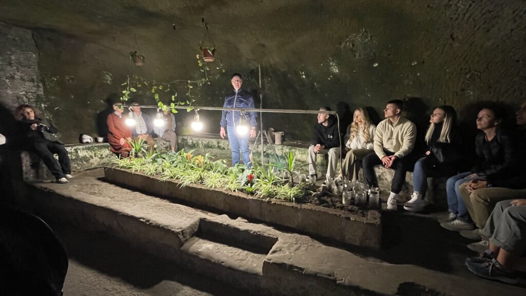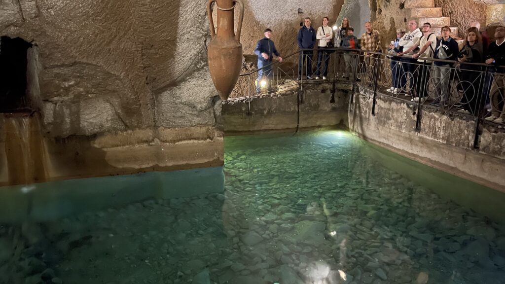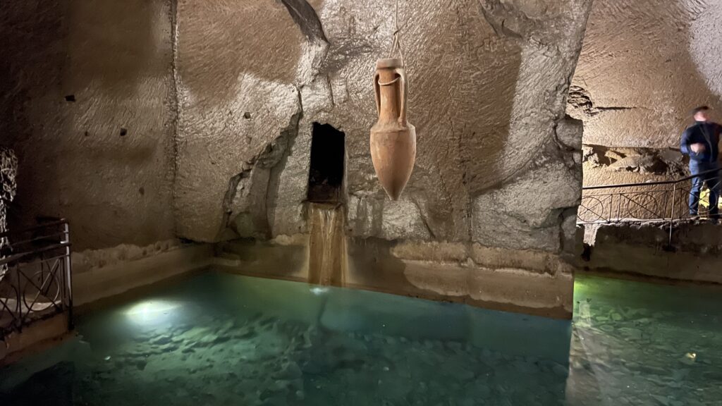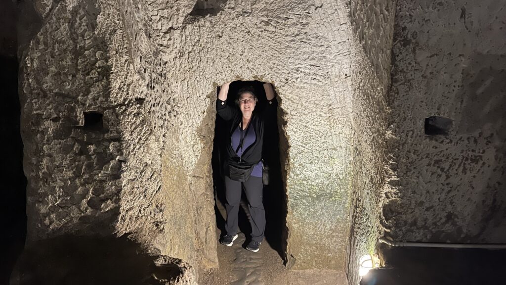 We arrived at the underground city just in time for an English tour. It was terrific. 45 metres down. We learned that Naples had been continuously occupied for 2,400 years. They call it the lasagna city because it’s built in layers and you can really see it in the structure. Whereas Rome leaves the ruins, Naples seems to just built on top of what was there before.
