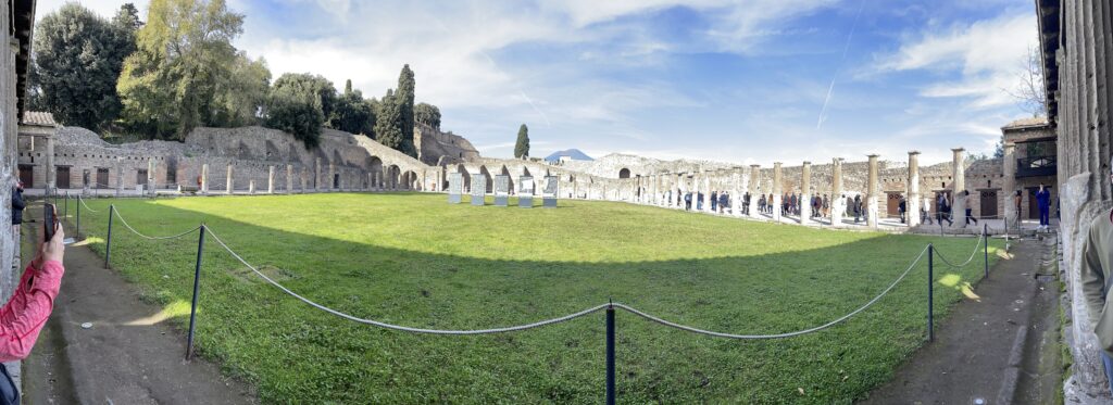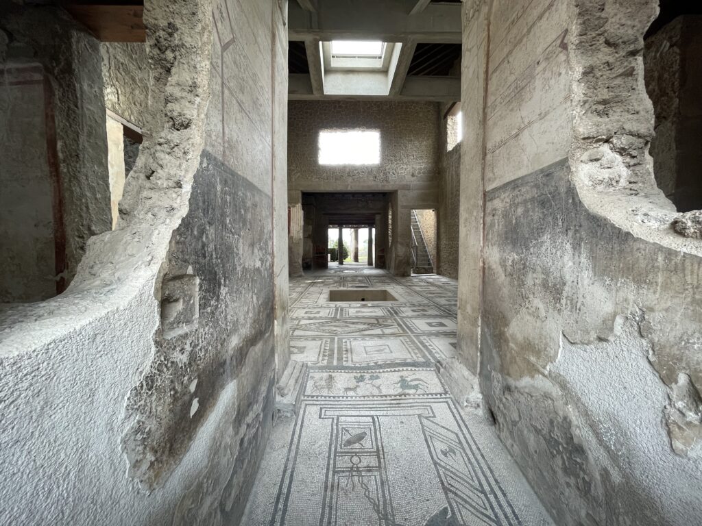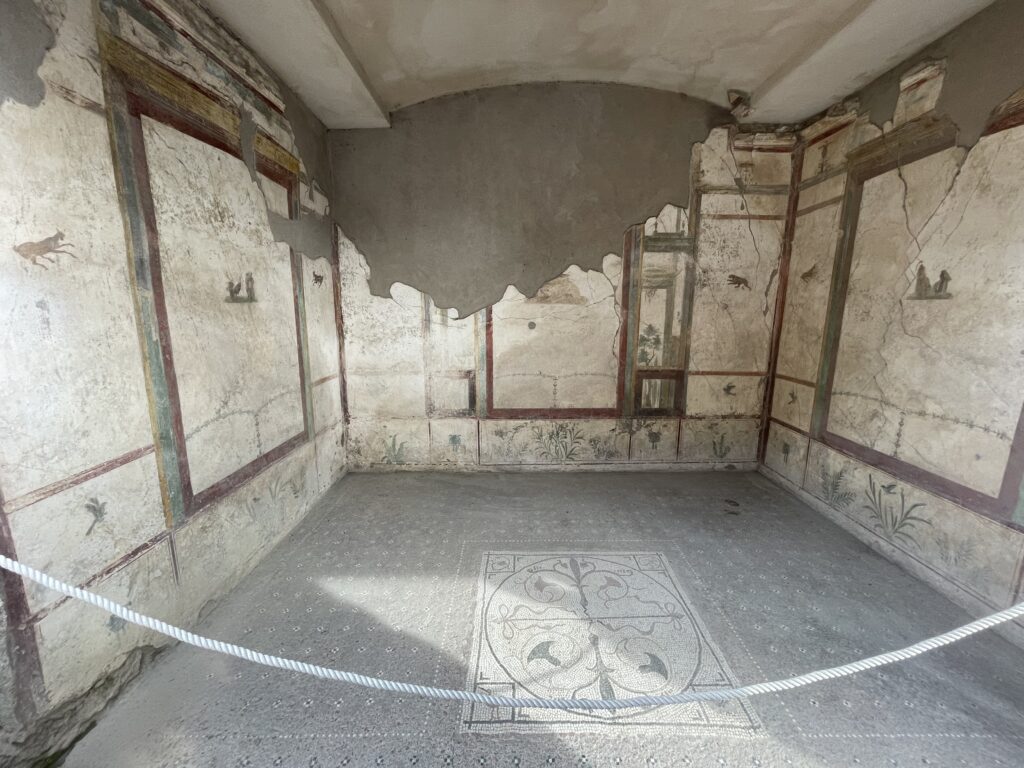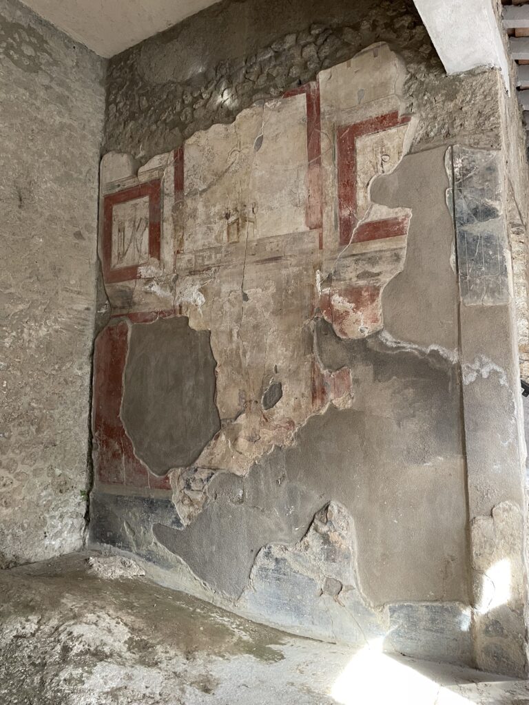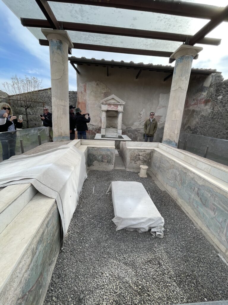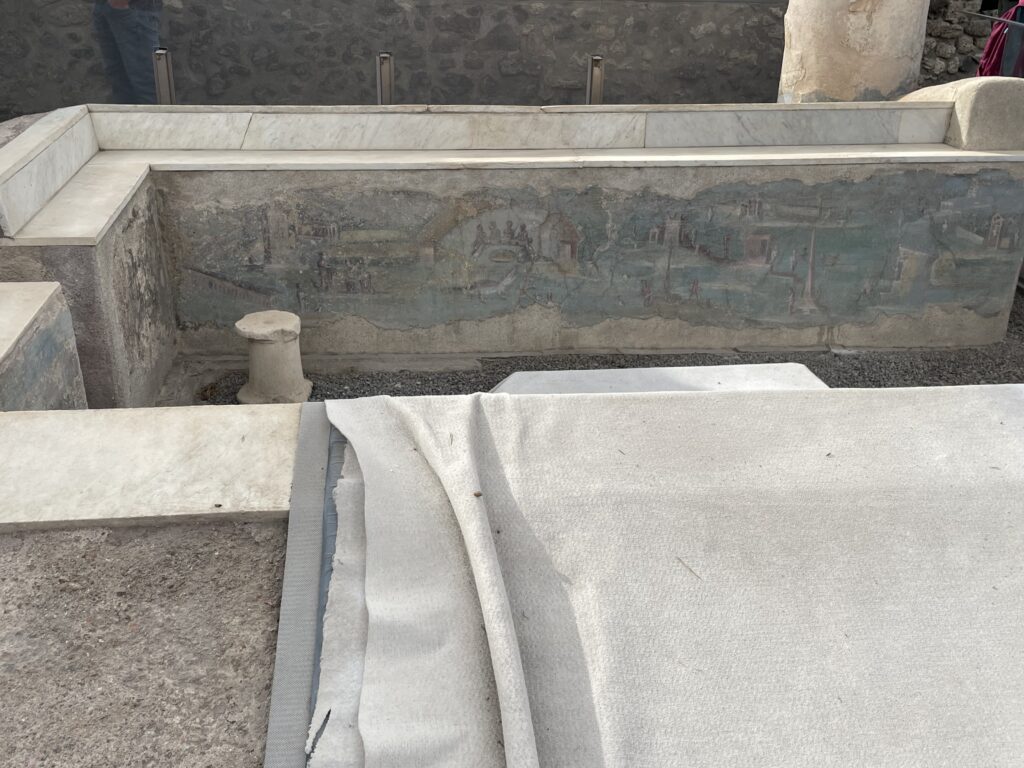 - 75% of Pompei has been excavated, but 25% is still buried and is being excavated very slowly.
