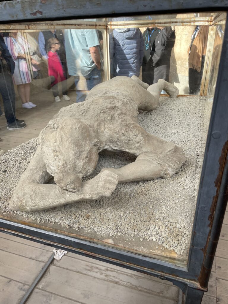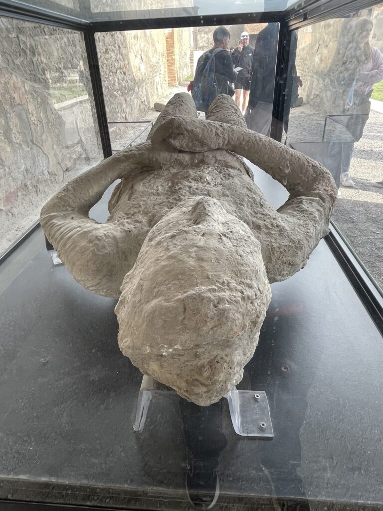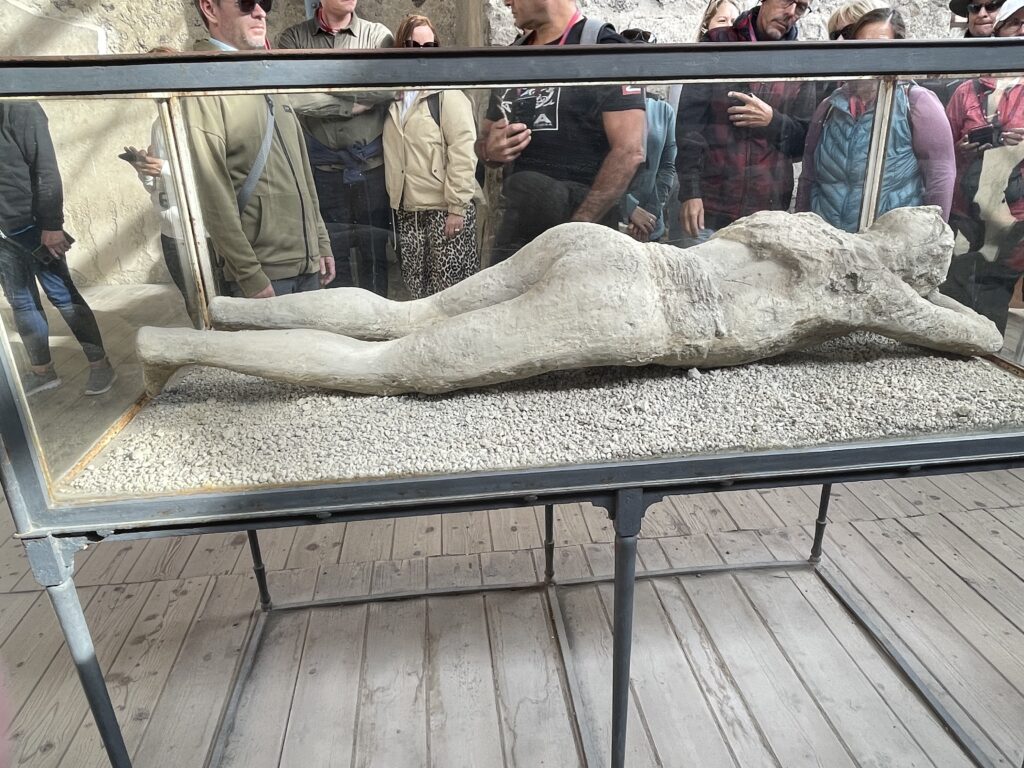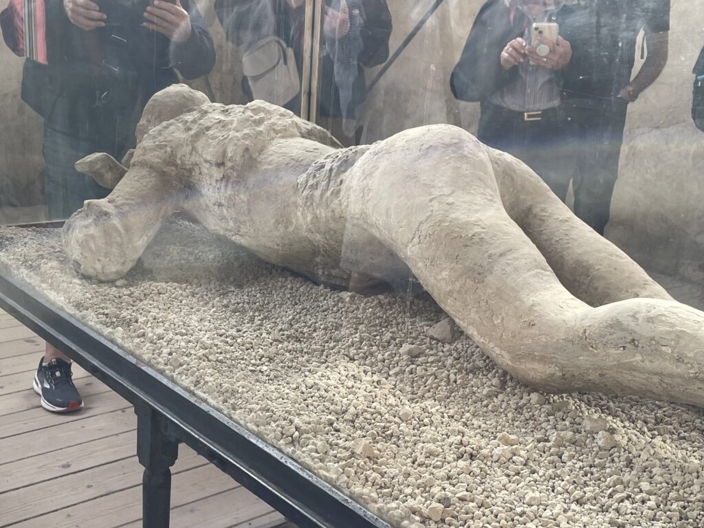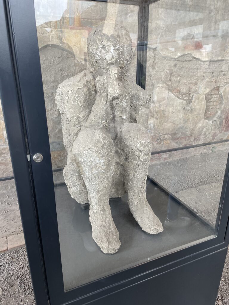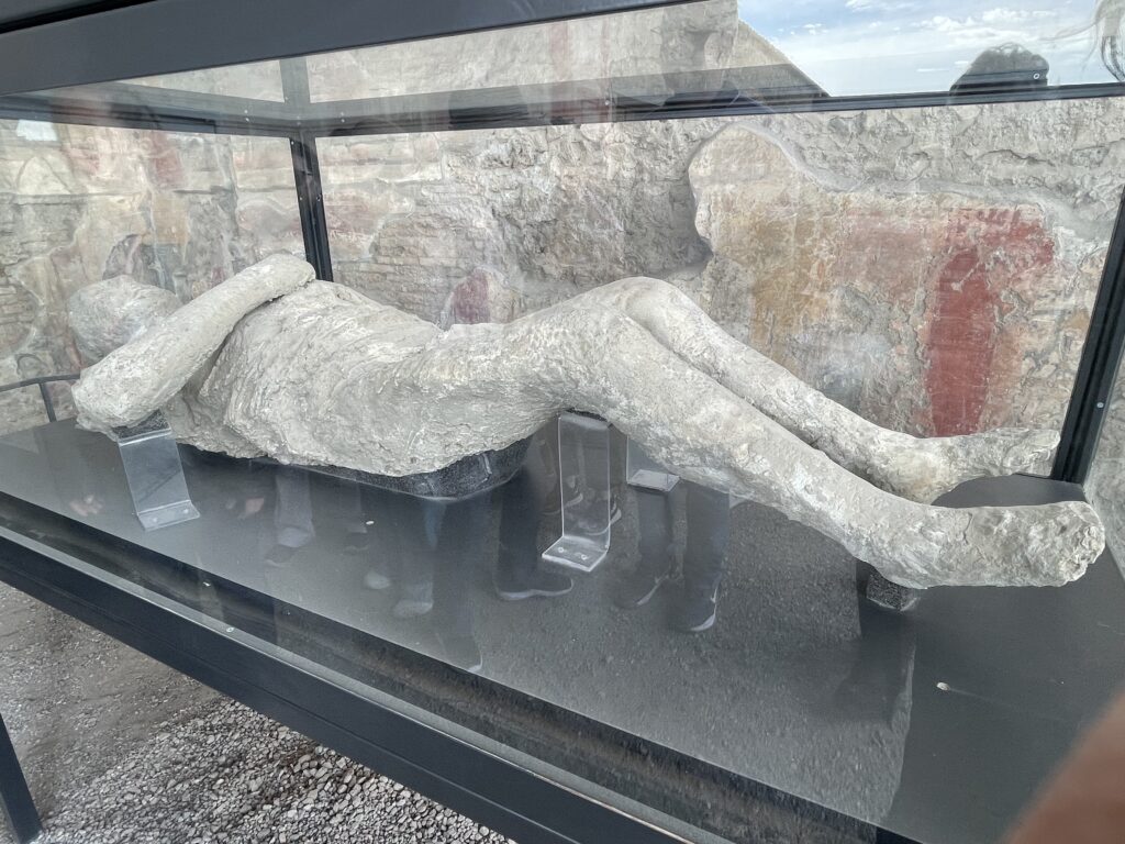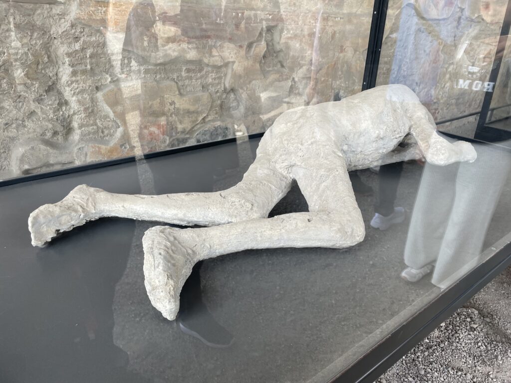 - The plaster casts in Pompei that were “frozen in time” have human skeletons inside them.