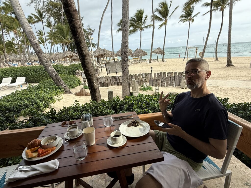 We crashed pretty early last night after eating way too much in the buffet. This morning we had breakfast and are now embarking on a day of… sitting on the beach with our books.