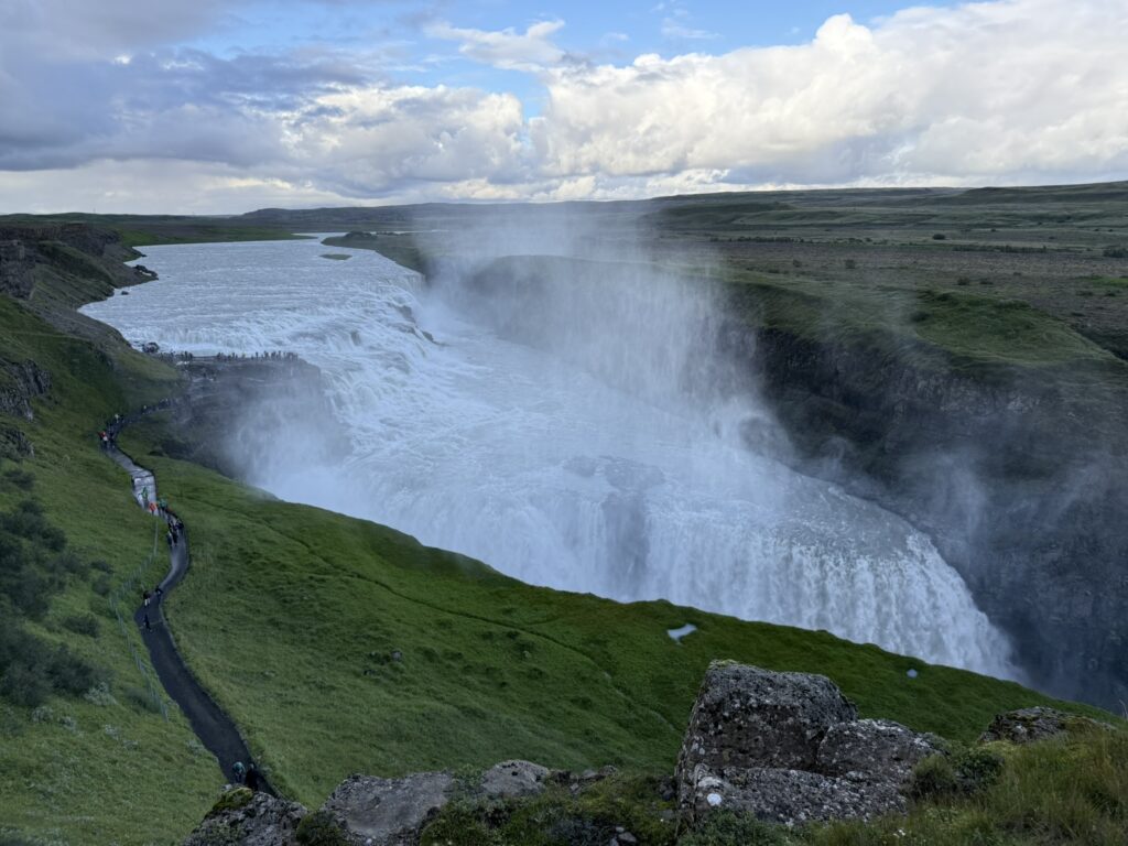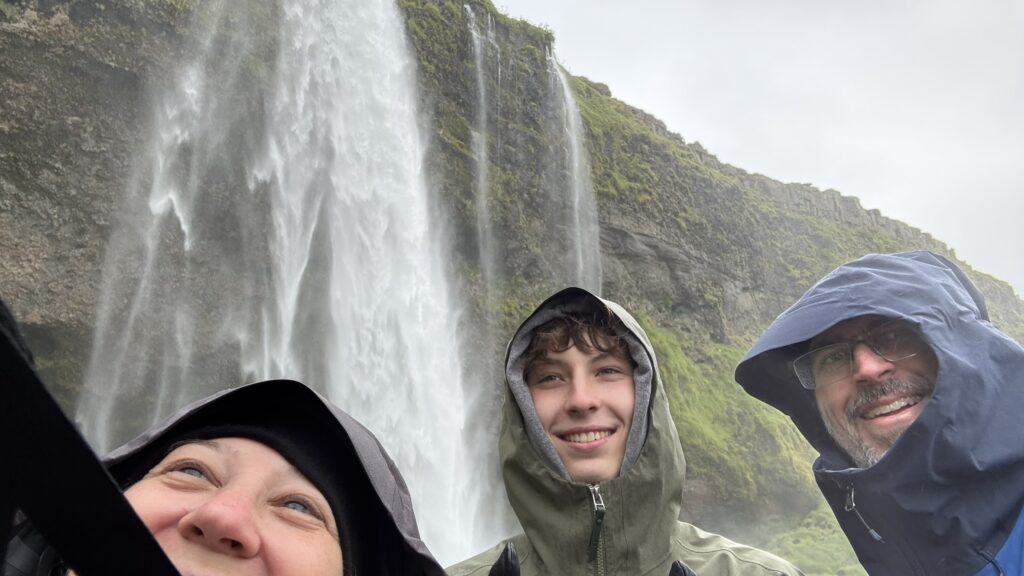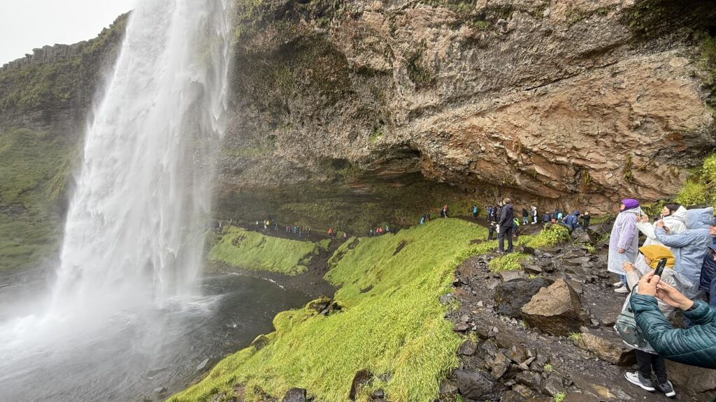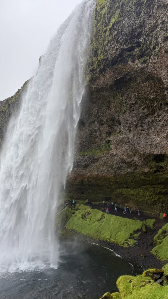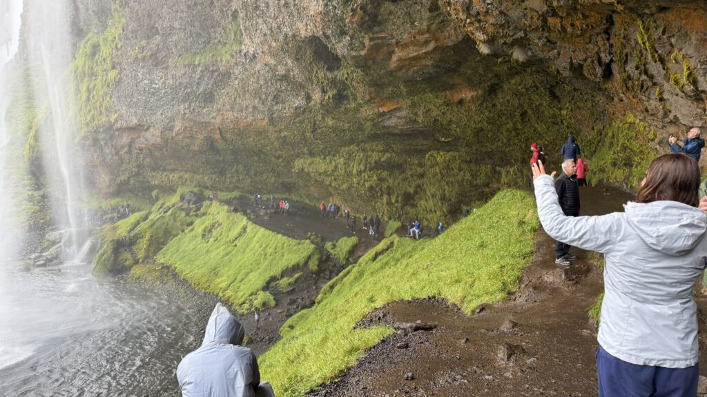 Our next stop along the Golden Circle were Selfoss followed by Seljalandsfoss. Basically two big waterfalls. But they were very different from each other. Also, did I mention the scenery? Well, there are pictures and videos. And we all stood under the waterfall at Seljalandsfoss. It was… wet.