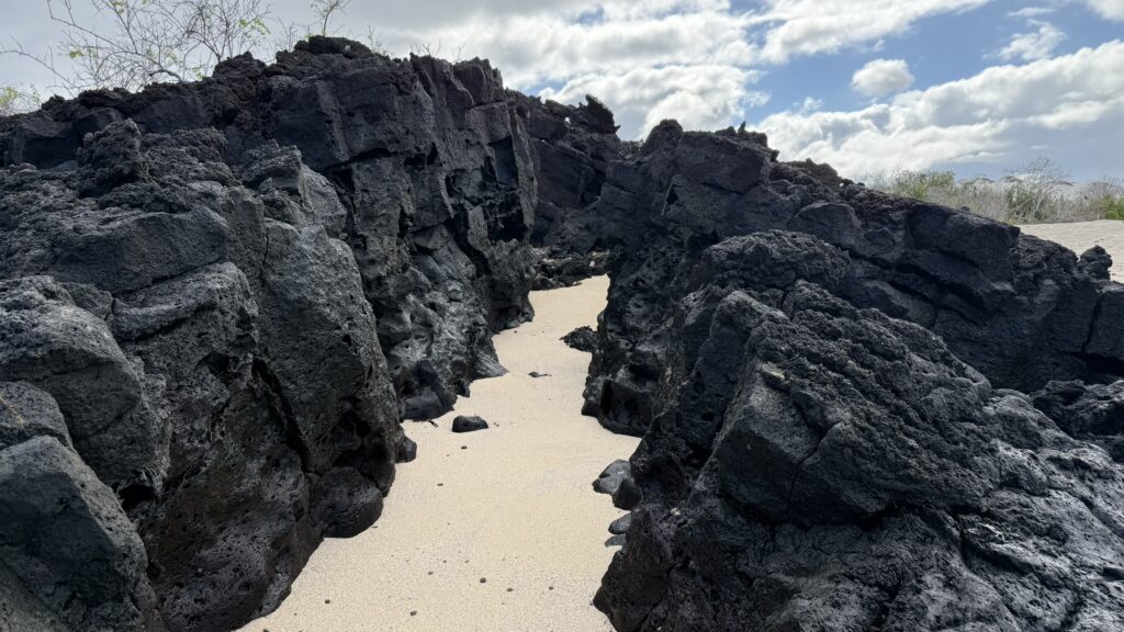 We saw our first Blue Footed Boobie on those rocks, but the pix didn’t come out very well. We had a wet landing (meaning we got out of the zodiac into the water), and did a short walk on beach.