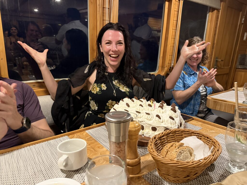 And, it was our new friend Kristin’s 40th birthday, so she got a surprise cake!