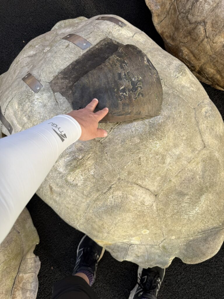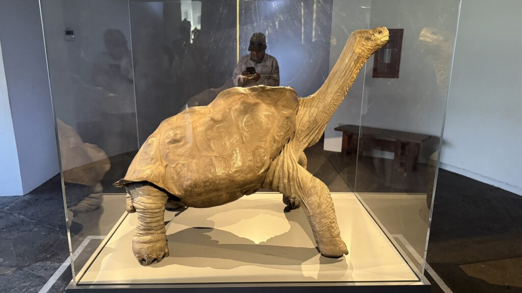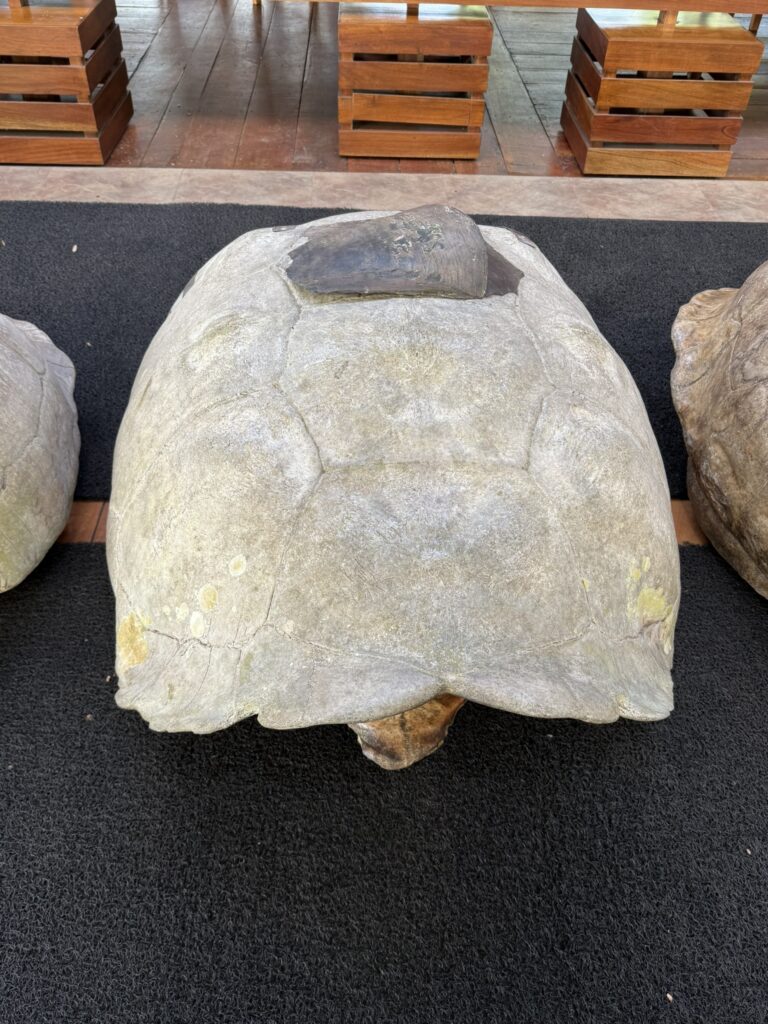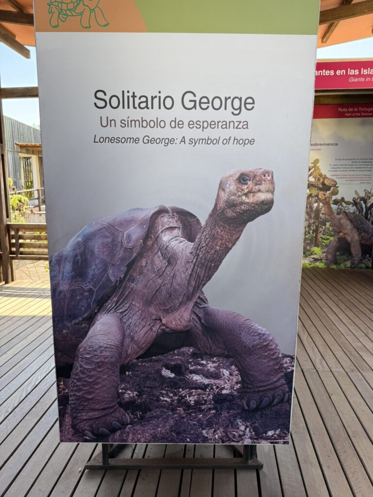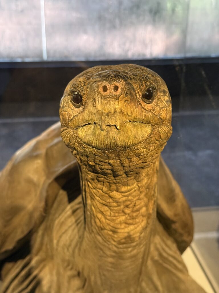 Lonesome George was a Pinta Island Tortoise. Actually he was the LAST Pinta Island Tortoise. They never found a female for him to mate with and he died in 2012, the last of his species. Lonesome George was mummified and is kept here in the Darwin Station in a temperature controlled room, behind glass to serve as a reminder…