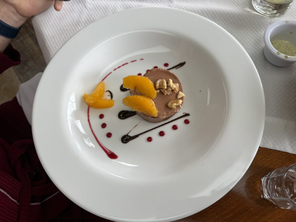 We started with the red mud scrub, moved on to the blue mud scrub, followed by alternating between the hot and cold plunges, then there was the “hot box” which made us both think we looked like Captain Pike (I know I have a real Star Trek thing going on right now), then the salt scrub, and the coffee scrub. After that whole circuit was complete we had a lovely lunch.