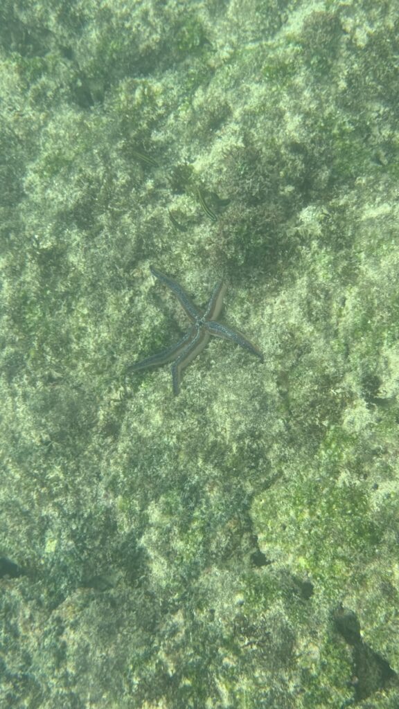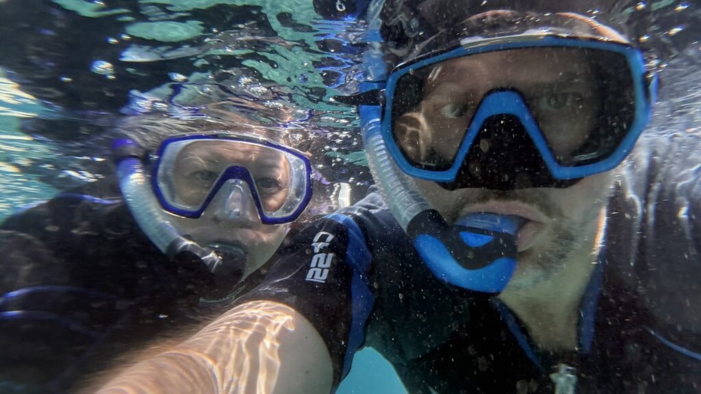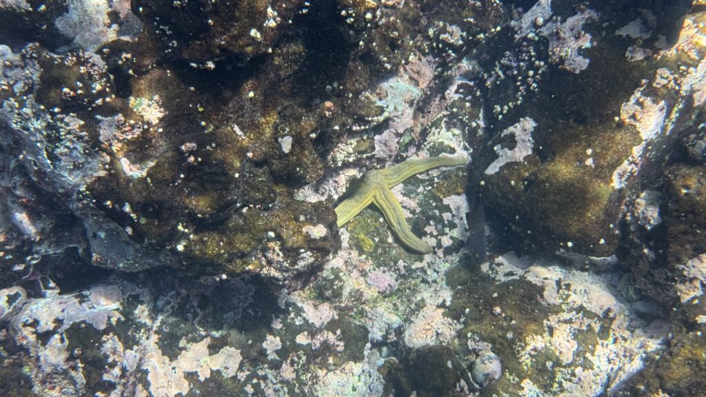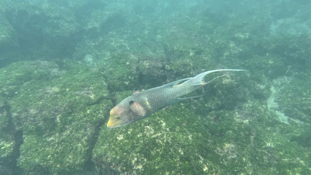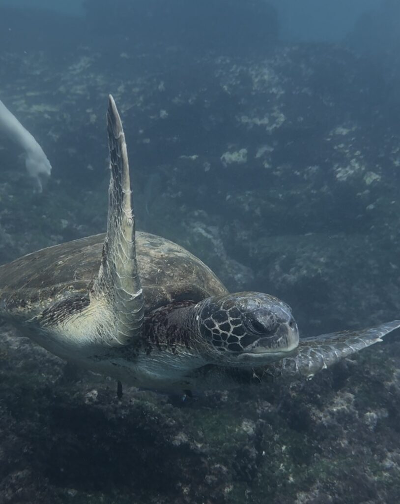 After the morning walk, we came back to the Coral 1 mid-morning because we were going to do a deep water snorkel before lunch. I accidentally fitted my phone into the underwater case about a millimetre off so I couldn’t use the camera! But thankfully Rich got a log of good pix and videos. It was a super cool experience to be so close to the shore and see the bottom just drop away under you, almost like an underwater cliff. There were lots of fishies and playful sea lions.