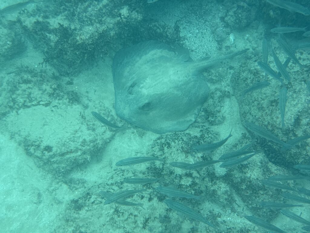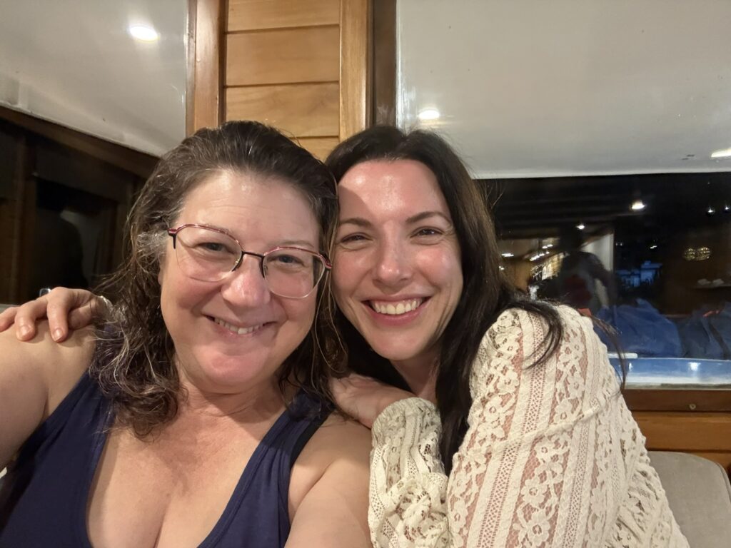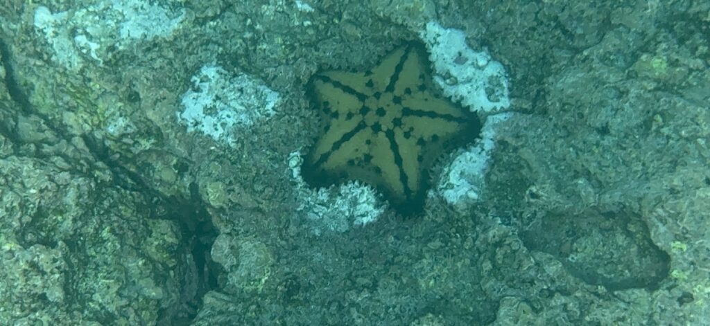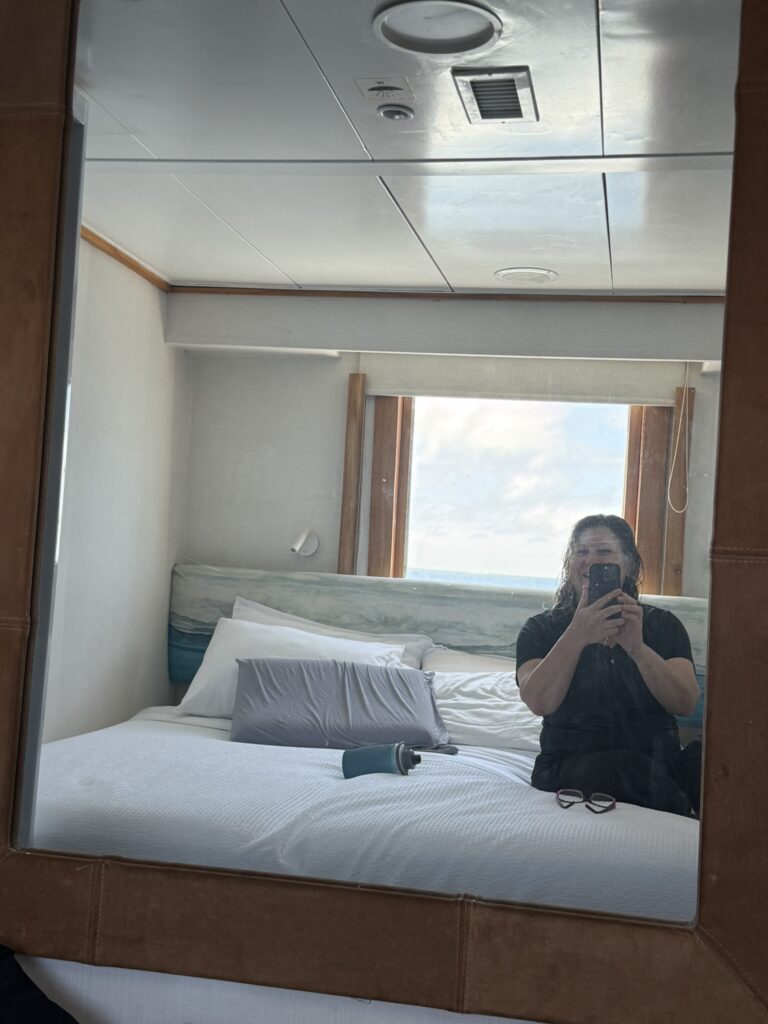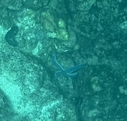 After the morning walk, we came back to the Coral 1 mid-morning because we were going to do a deep water snorkel before lunch. I accidentally fitted my phone into the underwater case about a millimetre off so I couldn’t use the camera! But thankfully Rich got a log of good pix and videos. It was a super cool experience to be so close to the shore and see the bottom just drop away under you, almost like an underwater cliff. There were lots of fishies and playful sea lions.